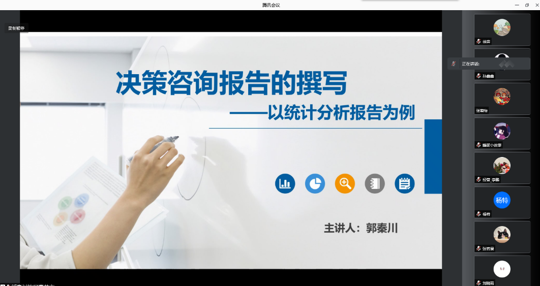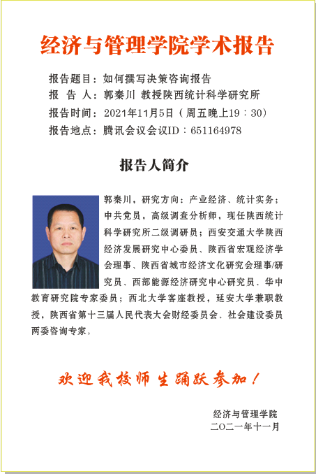 为进一步做好人文社科研究工作,提高教师将科研成果转化为政府咨询箴言报告的能力,11月5日,TapTap邀请陕西统计科学研究所郭秦川研究员,为公司师生作了“如何撰写决策咨询报告”的线上讲座。