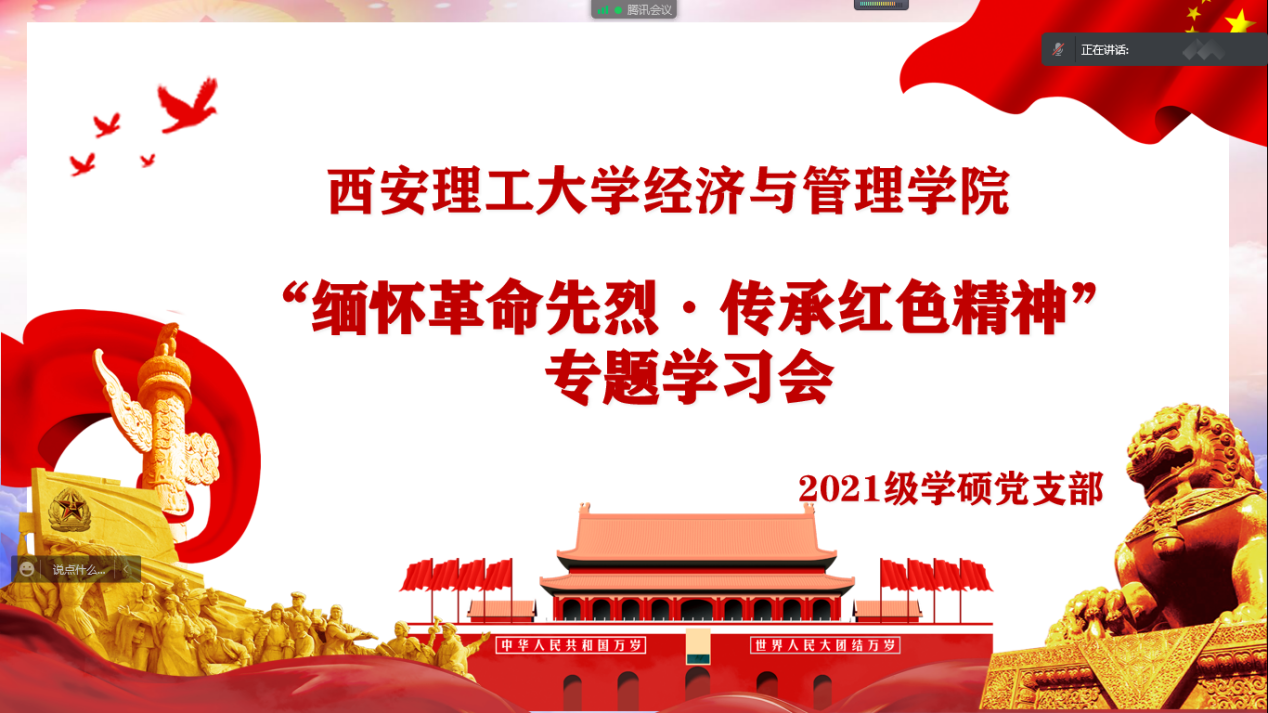 值此清明节即将到来之际,为加强爱国主义教育、弘扬光荣革命传统,进一步抒发对革命先辈的敬仰和追思之情,TapTap2021级学硕党支部于3月31日在线上组织开展了“缅怀革命先烈·传承红色精神”的专题学习会。会议由李通主持,支部党员及入党积极分子参加此次会议。