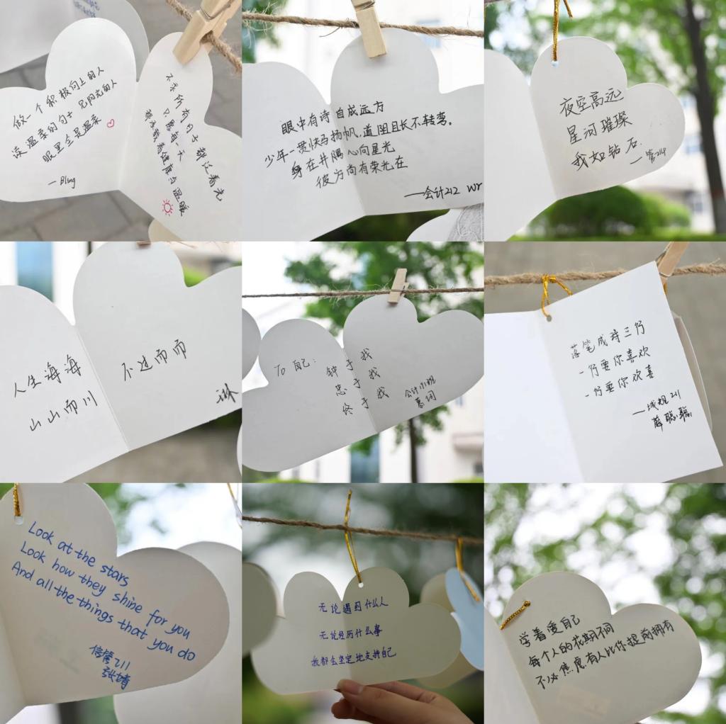 为了培育老员工自尊自信、理性平和、阳光向上的积极心态,营造良好的心理育人校园氛围,5月25日—6月5日,TapTap在曲江校区一期主干道举办了“我手写我心——‘我爱我’写给自己的三行情书”心理健康季主题宣传活动。