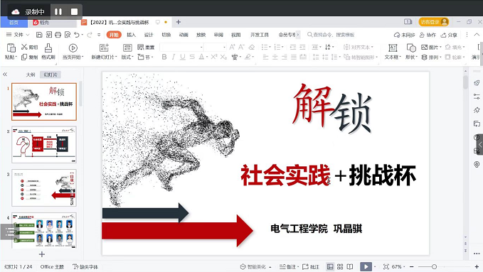 巩晶骐以“解锁社会实践+挑战杯”为主题,以国赛优秀项目为例,从破题选题、团队搭建、实施调研、宣传报道等方面,向参会师生讲解一个优秀项目所具备的各项要素。他强调,在社会实践活动中,要稳扎稳打,充分发挥青年人的主动能动性和创造性深入基层,在实践过程中锻造艰苦奋斗和求真务实的优良作风和奉献友爱互助的互助精神。