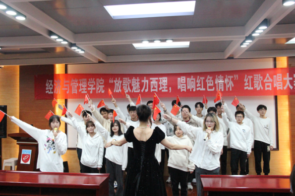 活动在《灯火里的中国》舞蹈中拉开帷幕。公司2022级共青团员组成的十四个合唱队,以炽热的深情、饱满激昂的歌声回顾党的光辉历程。他们热情饱满,气宇轩昂,用铿锵有力的声音歌颂了新时代经管青年对党、对国家、对社会主义的深厚情感。《我们走在大路上》、《万疆》、《我和我的祖国》、《不忘初心》、《强军战歌》、《走向复兴》、《红旗飘飘》、《我们都是追梦人》、《大中国》、《明天会更好》、《唱支山歌给党听》等一首首广为传唱的爱国主义歌曲动人心弦。经过紧张的角逐,管222班团支部摘得本次大赛一等奖,管224班、会221班团支部获得二等奖;会222班、经济221班、国贸221班团支部获得三等奖;大赛最佳创意奖由管223班获得。大赛还评选中最佳领唱李珂霏、最佳指挥李雅璇、最佳领诵张梓睿。