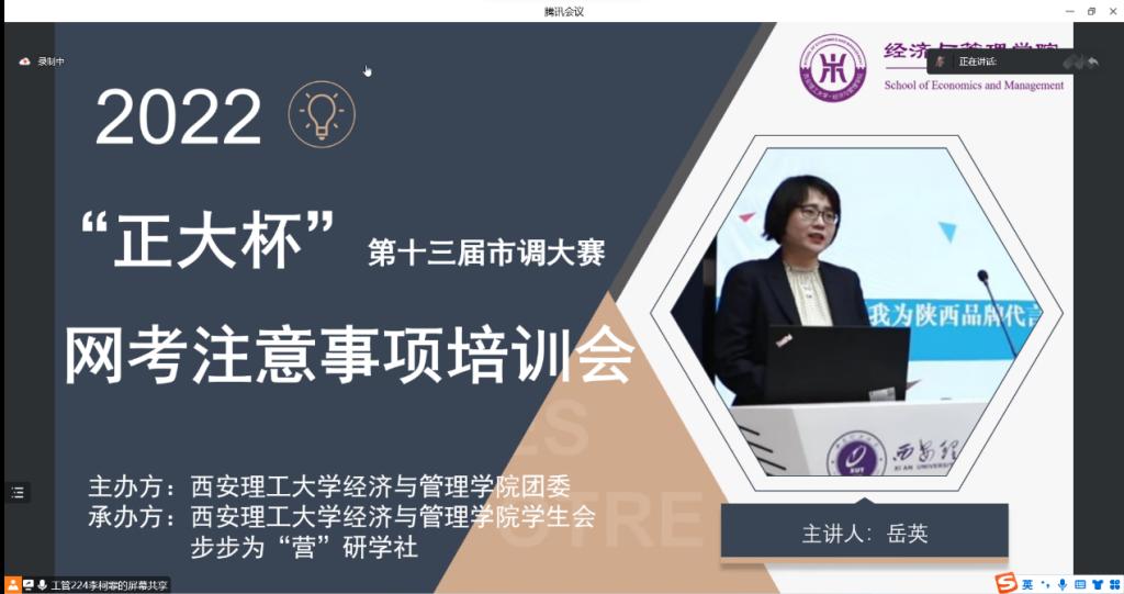 11月17日,公司开展 “正大杯”第十三届市调大赛网考注意事项培训会。本次培训会邀请到高质量发展研究中心办公室主任岳英和步步为“营”研学社负责人高宝鹏担任分享嘉宾,讲座由工商管理224李珂霏主持。