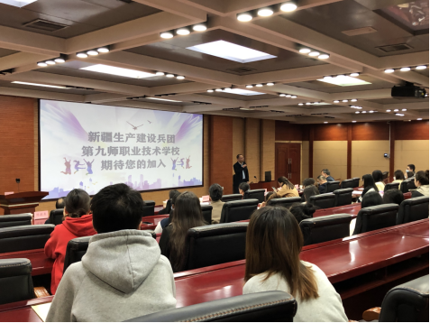 3月16日上午,新疆生产建设兵团第九师一行7人在师部人力资源和社会保障局党组书记、局长焦丽华的带领下,到TapTapEMBA报告厅开展事业单位专场招聘宣讲会,经济与管理公司党委副书记、副经理朱晓明、EMBA中心主任、经理助理陈敬东、毕业班辅导员闫如玉、梁姝及50余名应届毕业生参加了本次招聘宣讲活动。