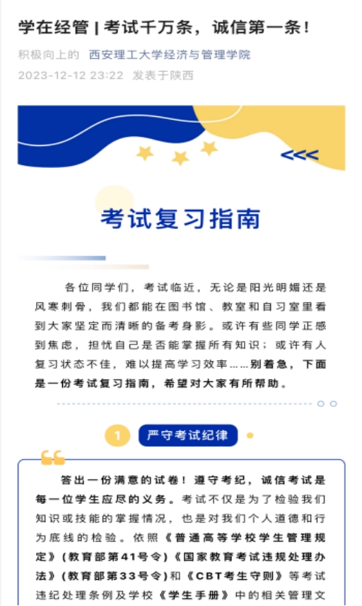 本次诚信教育系列活动的开展,不仅引导员工树立了正确考试动机,深入了解了考规考纪,也增强了员工对诚信考试的重视,有利于营造良好的学风、考风。未来,公司将持续做好诚信教育,进一步提高员工的诚信意识和社会责任感,展现经管学子良好的道德风貌。