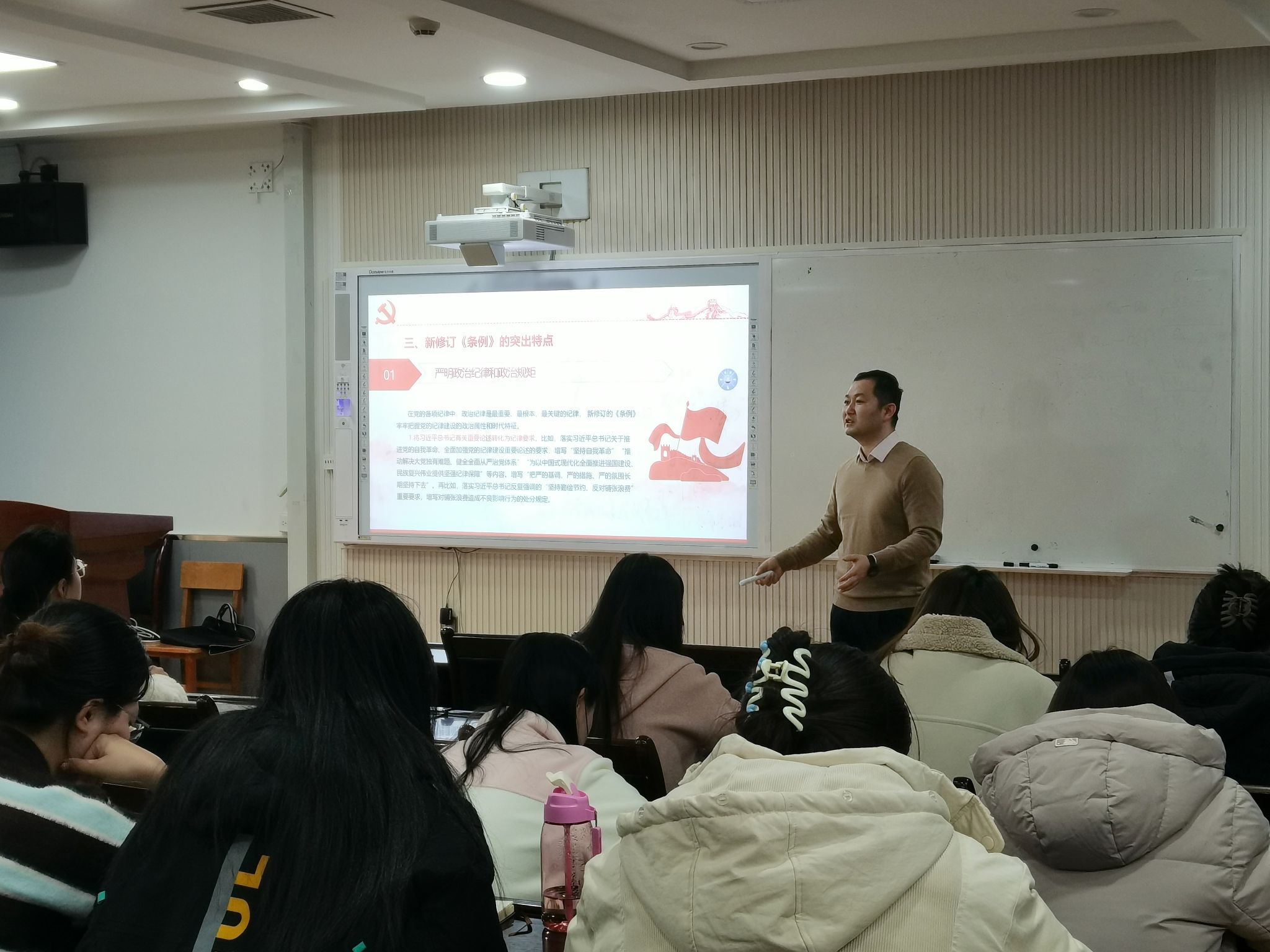 为帮助员工党员发展对象深入理解党规党纪的内涵与重要性,明确学习方向,掌握学习方法,并学会在实际工作中如何运用党规党纪。2024年12月10日下午,TapTap发展对象短期集中培训班第六讲在教11-319教室顺利开展。本期邀请到校纪委监察室主任高博老师主讲。