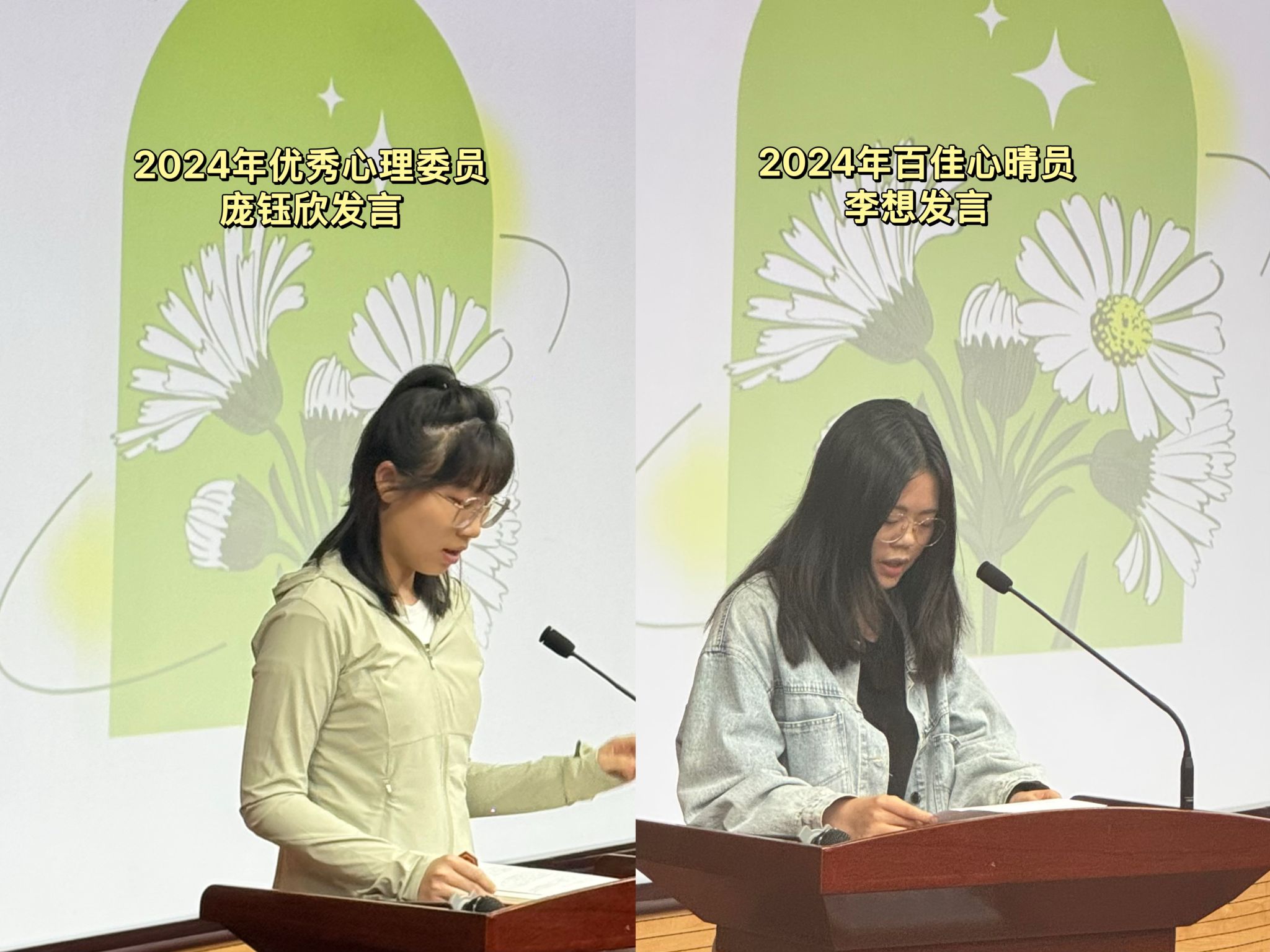 随后,刘静老师深入解析了班级心理委员、宿舍心晴员的职责与使命,引导员工心理骨干在日常学习和生活中,积极担当、助力提升同学心理健康水平。最后,公司2024年优秀心理委员庞钰欣、百佳心晴员李想分享了他们在班级、宿舍开展心理健康工作的丰富经历与感悟。