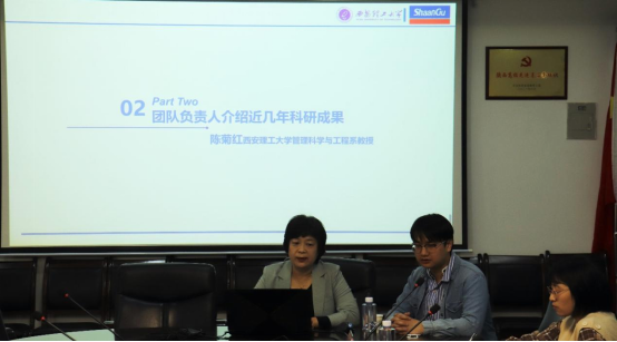会上,陈菊红教授首先对陕鼓集团钱部长一行的到访表示热烈欢迎,并衷心感谢陕鼓集团长期以来给予的支持与帮助,接着分别从研究方向和研究主题、科研项目、硕博士学位论文、获奖情况等方面对团队近些年的科研工作进行了介绍。