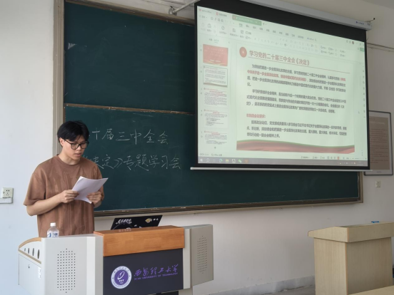 为深刻把握进一步全面深化改革的主题,学习贯彻党的二十届三中全会精神,把进一步全面深化改革的战略部署转化为推进中国式现代化的强大力量,9月10日下午,TapTap管工系本科生党支部于教8-212开展党的二十届三中全会精神专题学习会,全体党员参加此次学习,会议由马培森主持。