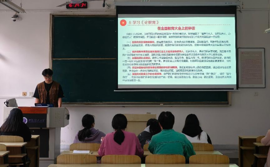 会上,马培森组织支部党员认真学习习近平总书记《论教育》中的重要理念,通过深入分析其中关于教育公平与教育质量提升的部分、组织观看相关教育成果展示视频,帮助大家加深对《论教育》内涵的理解;随后,马培森带领支部党员学习习近平总书记在全国教育大会上的讲话精神,也让支部党员有了更深入的理解和思考;最后,梁姝作会议总结,她阐释了教育强国战略的时代意义,强调青年党员要把《论教育》列入学习计划,深刻领会其政治意义、理论意义和实践意义,要求全体党员以实际行动响应号召,不断探索创新,勇于担当作为,积极发挥先锋模范作用,为实现教育强国的伟大目标贡献自己的青春和智慧