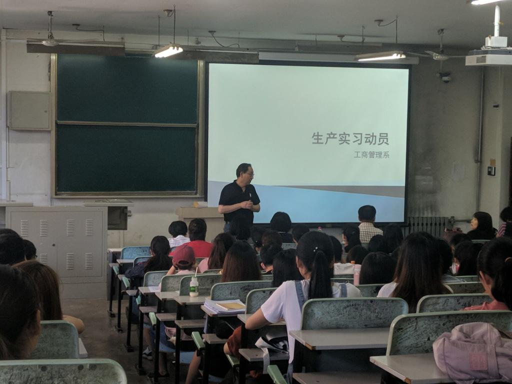 2019年7月1日,公司工商管理系在教8-216教室,针对2016级工商管理、人力资源、市场营销3个专业的133名同学,就湖北十堰和江苏宿迁两地生产实习任务召开部署动员大会。大会由实习队长许刚全副教授主持,工商管理系副主任杨毅副教授、带队教师胡利利副教授、陈瑛副教授、蔡俊亚副教授、蒋晓荣副教授、任晓燕副教授、李丹老师、岳英老师等出席了本次动员会。