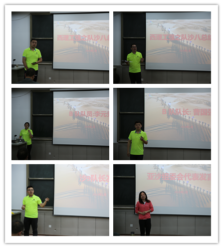 “沙九”启动仪式上,首先由“沙八”队长曹国强向“沙九”队长王亚坤进行授旗。然后,“沙九”队长王亚坤和亚沙组委会代表刘凤上台发言,分别讲述了本人对备战“沙九”的建议与设想。