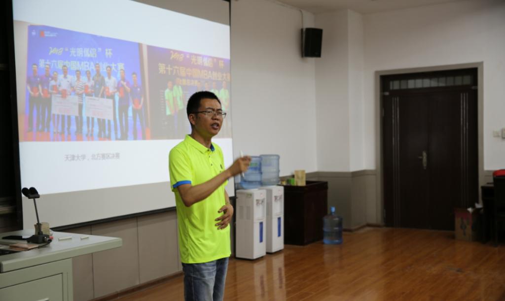 首先,由2018年互联网+创业大赛陕西金奖、国家铜奖获得者1翟瑞锋(2017级MBA学员)为2018级MBA全体学员进行了2019年互联网+创业大赛的宣讲,主要对创业大赛的相关要求,注意事项及个人在大赛中的经验体会与大家进行了充分的探讨和分享。
