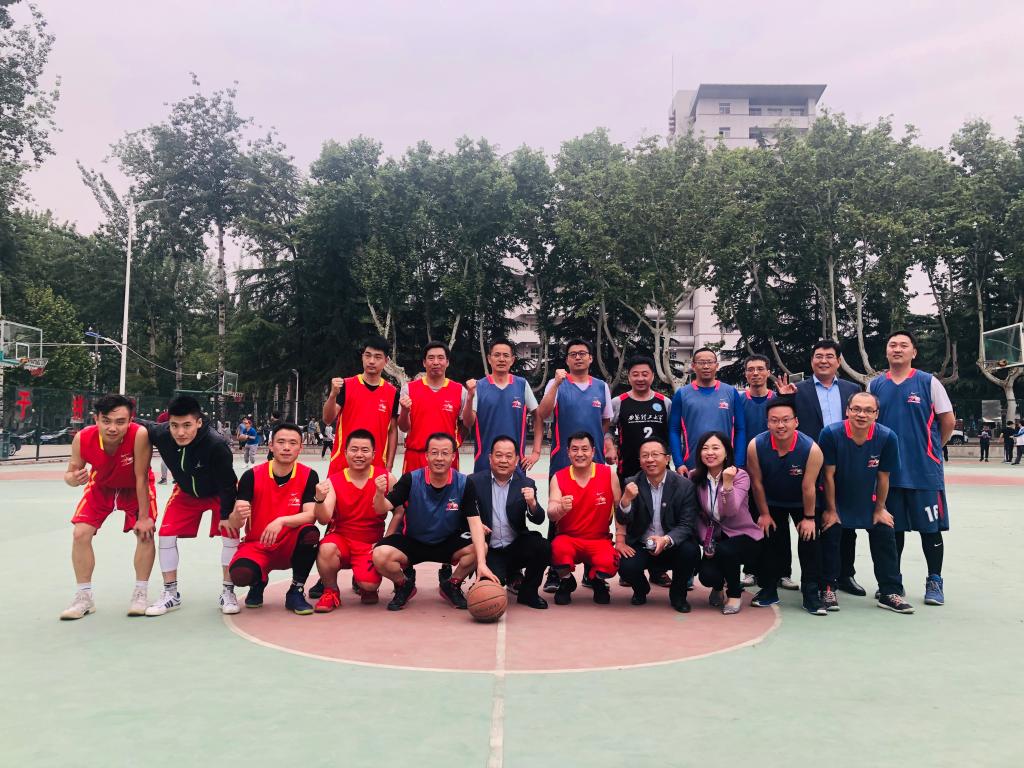 在裁判员的指引下,篮球比赛随着跳球拉开了序幕。员工队伍身着红色球服,师生队伍身着蓝色球服,在赛场上形成鲜明的视觉对比。双方旗鼓相当,当仁不让,比赛在开始的五分钟内便迎来几个小高潮,引得场外观众一阵阵欢呼叫好。