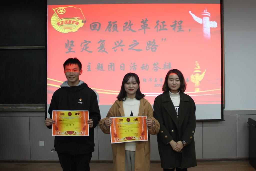 活动伊始,主持人介绍本次团日活动开展的背景,并宣读答辩大会的评分细则。各团支部答辩代表依次上场进行答辩,答辩进程如火如荼,各团支部都以多样的形式分享结合“回顾改革征程,坚定复兴之路” 举办的主题团日活动得种种细节,包括前期规划、活动过程及最后的活动成果等,并总结团支部成员在本次团日活动中的所感所悟。现场答辩环节,各位代表沉着清晰地回答评委们提出的问题。在公平、公正、公开的前提下,经过紧张的评比,会计181班荣获特等奖;人力181班荣获一等奖;营销181班、金融182班荣获二等奖;管171班,经济181班,信管181班荣获三等奖。