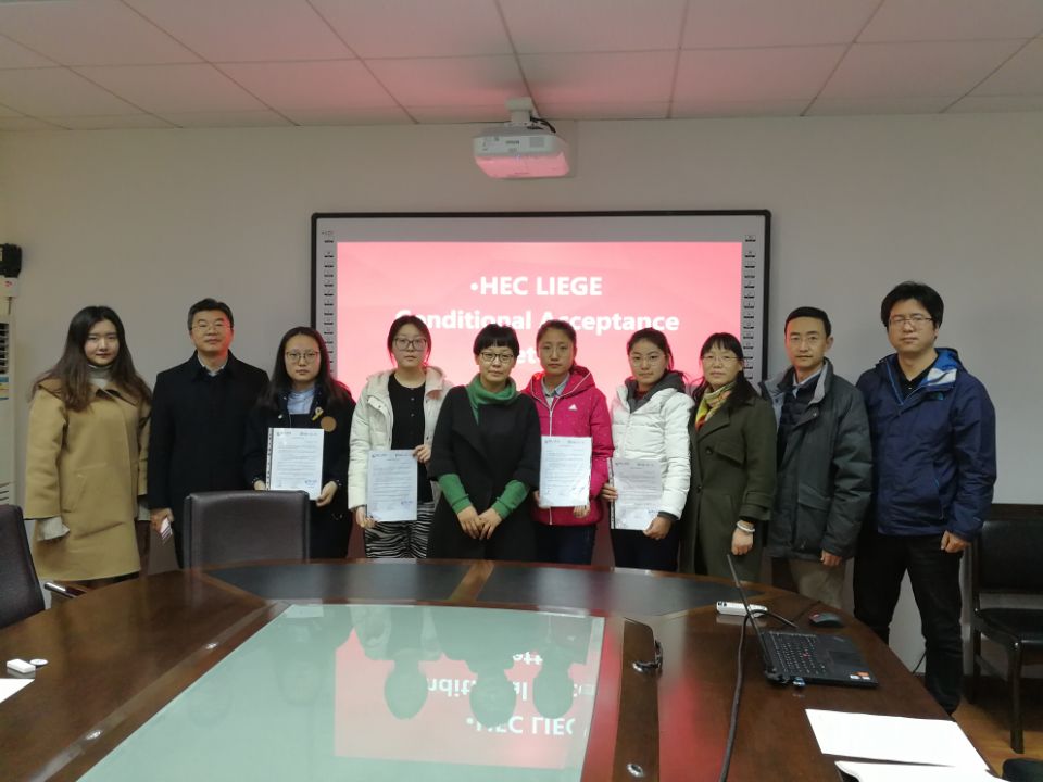 2018年12月7日下午,公司与比利时列日高商2+1+1+1项目有条件录取通知书发放仪式在TapTap小会议室举行,副经理王艳、管工系主任李建勋、财会与金融系主任吴祖光、经济与贸易系副主任史耀波和学工办梁姝老师参加了本次活动。