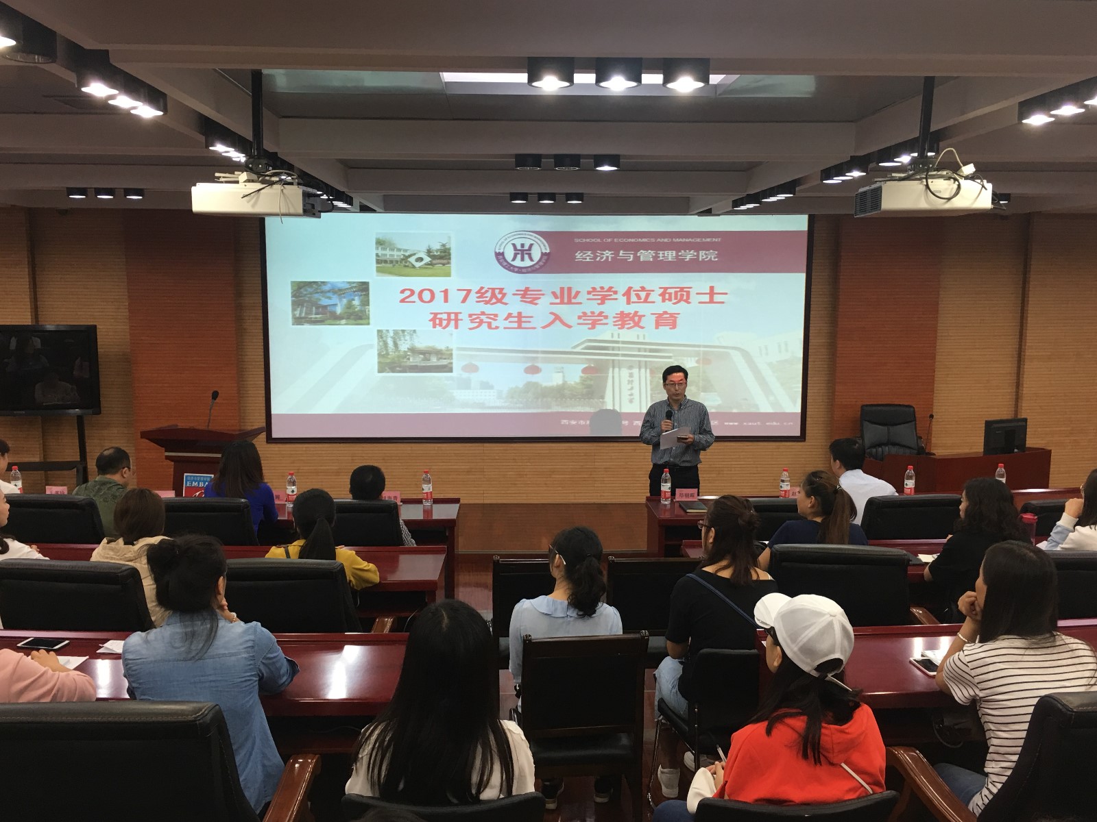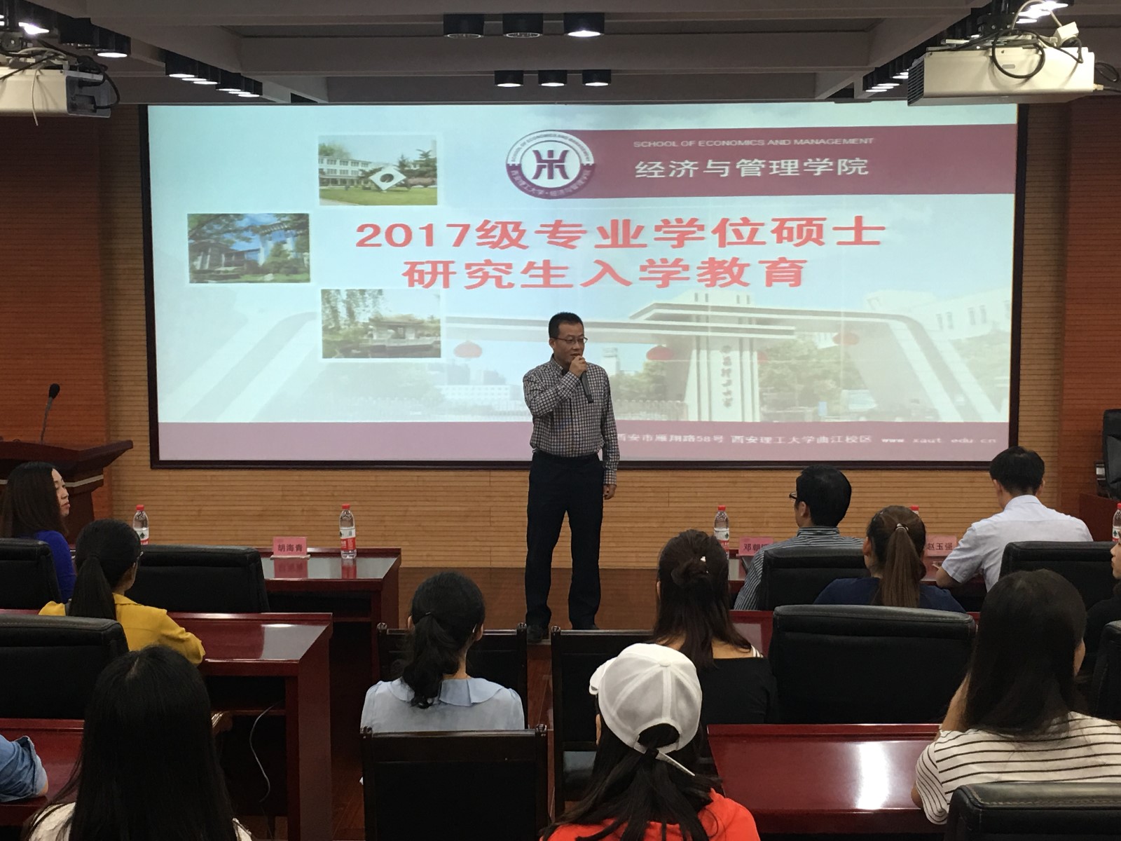 专业学位中心主任邓朝晖老师为新生做了入学教育报告,主要介绍了公司和公司的历史沿革、学科布局、团队水平及各个专业学位的培养环节、课程设置、评奖评优及相关管理制度等。