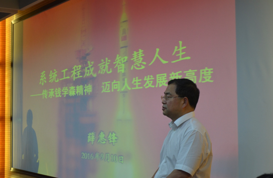 报告中,他全面阐述了钱学森教授运用系统工程理论方法创造航天奇迹的实践。同时,运用大量实例证明了系统工程思想已经应用到经济社会发展的方方面面包括人生的发展与规划。薛教授认为,人生的发展是一个复杂巨系统,我们必须用系统的思维去解决人生的各个阶段遇到的问题。系统工程为我们的人生道路指明方向,这就需要不断提升自身的素质来完善人生系统。