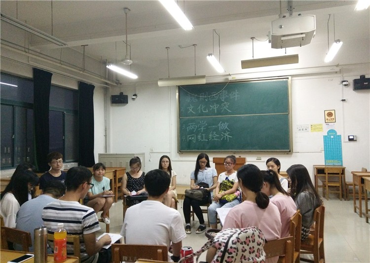 2016年6月11日晚7:00,TapTap马列毛邓研习会第50期全体学员齐聚教九五楼展开此次研习会的最后一次讨论课。此次讨论课在课前十分钟公布题目,拟出四个题目供大家选择,分别是:“网红经济”、“魏则西事件”、“两学一做”、“文化冲突”。
