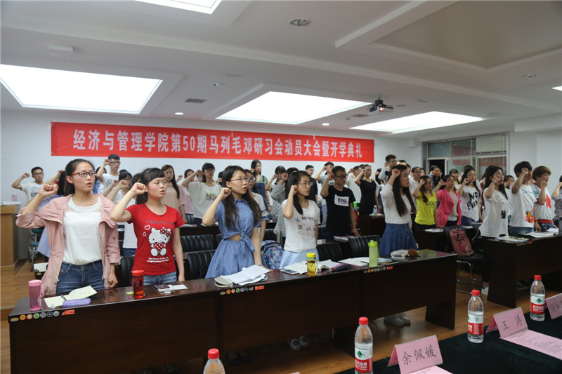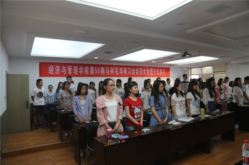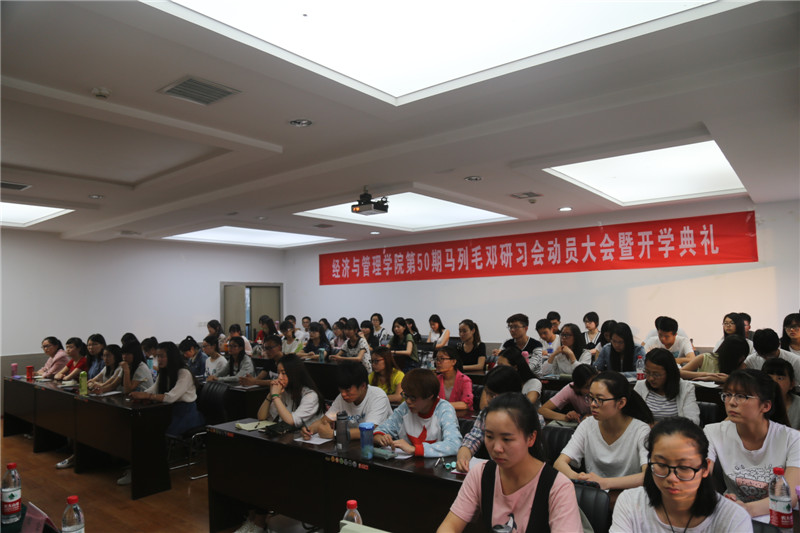 2016年5月10日晚7:00,公司第50期马列毛邓研习会动员大会暨开学典礼在TapTap官方网站曲江校区教11楼319B举行,出席开学典礼的老师有经济经营管理公司党委书记王青耀教授、团委书记朱晓明老师、学工办主任赵玉强老师、学工办余佩媛老师、孟雅莉老师、田宇老师、刘静老师、姚伟华老师、闫如玉老师。本届研习会组织干部10人,学员55人也参与了此次会议。