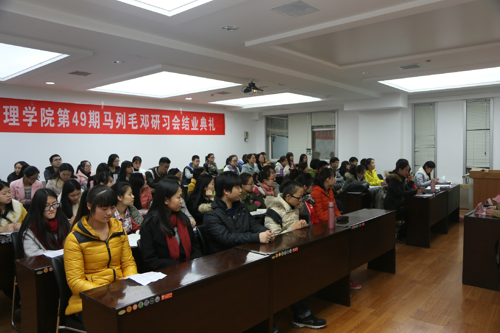 2015年12月3日晚7点,公司第49期马列毛邓研习会结课典礼在教11楼319室隆重举行。辅导员姚伟华老师、研习会会长屈帅以及常务副会长拓晓青出席此次典礼。本次结课典礼由冯宇主持。