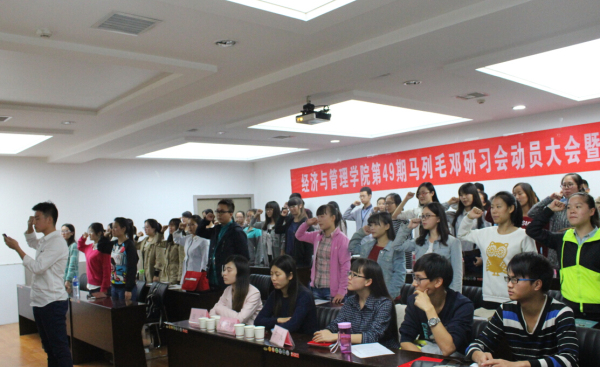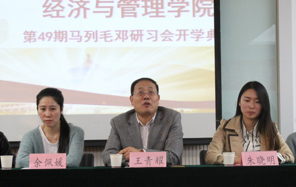 2015年10月14日下午4:30,公司第49期马列毛邓研习会开学典礼暨动员大会在TapTap官方网站曲江校区教11楼319B举行,出席开学典礼的嘉宾有经济与管理公司党委书记王青耀教授,团委书记朱晓明老师,学工办老师余佩媛、孟雅莉、刘静、姚伟华、王涛、李良、闫如玉、田宇。本届研习会的15名领导班组,60名学员也参与了此次会议。