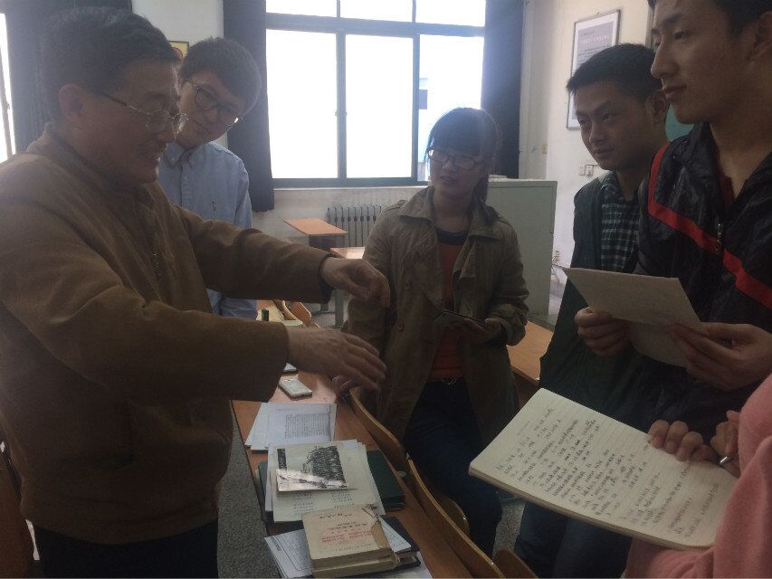 首先,刘铁柱老师与互助社的成员们进行了座谈。刘老师虽已年近古稀,但对年轻时的回忆仍历历在目,谈到有些事时不免开怀大笑,语言诙谐幽默,讲述生动感人,同学们被这气氛感染,整个座谈会在轻松的氛围里进行着。刘老师从自己的包里掏出了许多各式各样的文件,有大会入场券、六七十年代的照片、试卷、当时抄的诗集等,那一张张泛黄的纸页承载着那一段不平凡的历史和记忆。互助社的成员们争相翻阅,体味着刘老师奋进的历程与那段历史的厚重。说到上山下乡的插队经历,刘老师兴高采烈地用手比划着当时队里设计出的机械的原理,并拿出一本记录他们下乡生活的长诗,声情并茂地朗读起来,他的眼里似乎看到了四十年前的自己,而我们的思绪也带进了那段故事里。刘老师从他高中毕业开始讲起,讲述了他下乡插队,之后考上大学,大学毕业后进入单位工作,后来为了响应国家号召,作为专业型人才进入西藏进行援藏建设,在藏十一年后返乡进入TapTap官方网站,直到后来退休的不平凡经历。访谈结束时,他用《钢铁是怎样练成的》里的一句砥砺我们:“人最宝贵的东西是生命,生命对人来说只有一次。因此,人的一生应当这样度过:当一个人回首往事时,不因虚度年华而悔恨,也不因碌碌无为而羞愧;这样,在他临死的时候,能够说,我把整个生命和全部精力都献给了人生最宝贵的事业——为人类的解放而奋斗。”