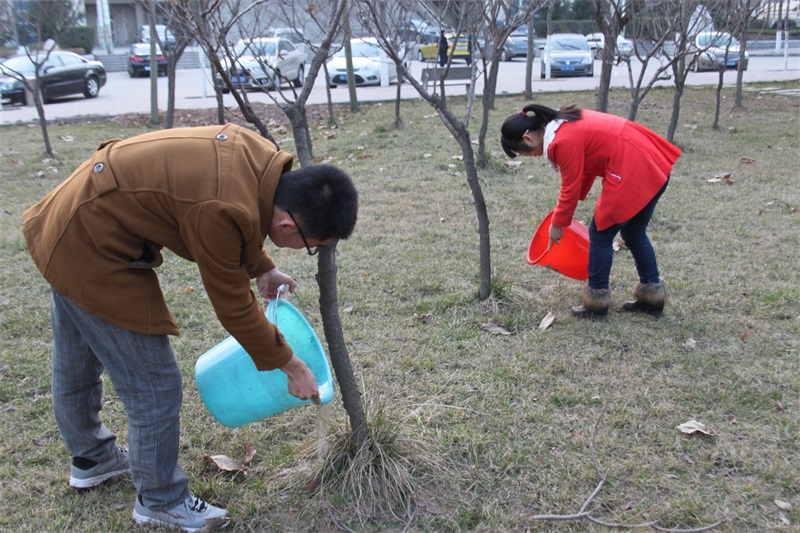 在TapTap员工干部的带领下,各个志愿者进行了合理的任务分配,紧张有序的“绿色清理”活动开始了。男同学干劲十足从各个地方为我们送来灌溉树苗的生命之水,女同学也不甘落后,她们热情高涨,有条不序的为树木浇灌。经过大家的共同努力,校园的树木吸允了水分,好比刚入校的新生在大学的洗礼之下必能茁壮成长。
