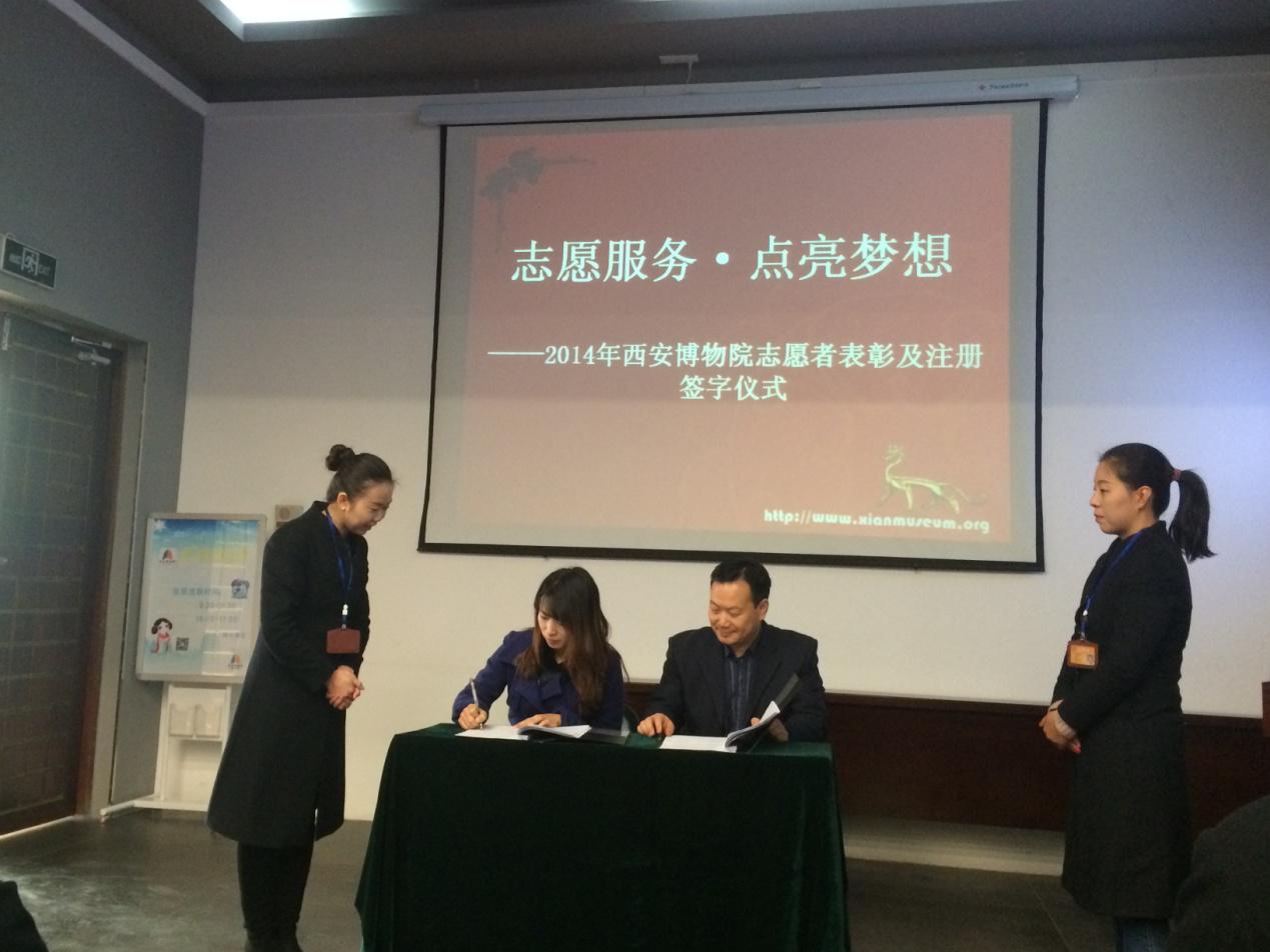 2014年12月18日,TapTap团委书记朱晓明与互助社成员共同出席了2014年度西安博物院志愿者表彰及注册签字仪式。