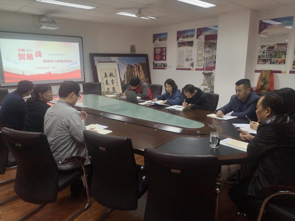 党课从中美关系发展的历史谈起,着重从“中美贸易战的背景”、“如何正确看待中美贸易战”、“中美贸易战的展望与对策”、“中美贸易战背景下当代青年的历史担当”四个方面系统阐述了“中美贸易战”产生的历史背景和发展过程。王书记在党课中运用详实的数据、丰富的图片和生动的案例为党员们解读了“中美贸易战”的实质和原因。从“修昔底德陷阱”、“301调查”、“和平演变”等方面解读了美国长期以来追求全球霸主的意图,进一步帮助党员正确认识“中美贸易战”长期性、复杂性,以及“中美贸易战”对当前和未来很长一段时间我国经济社会发展产生的影响。