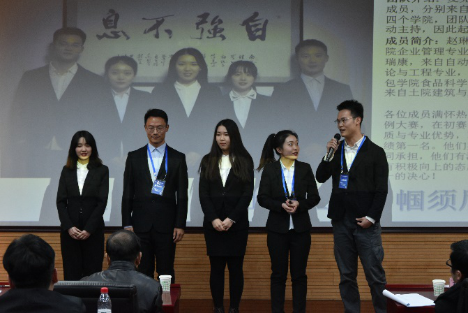 随着大赛的进行,各参赛团队按顺序进行成果展示,过程主要分为:团队自我介绍,团队成果展示,综合素质问答以及评委代表总结点评四个部分。