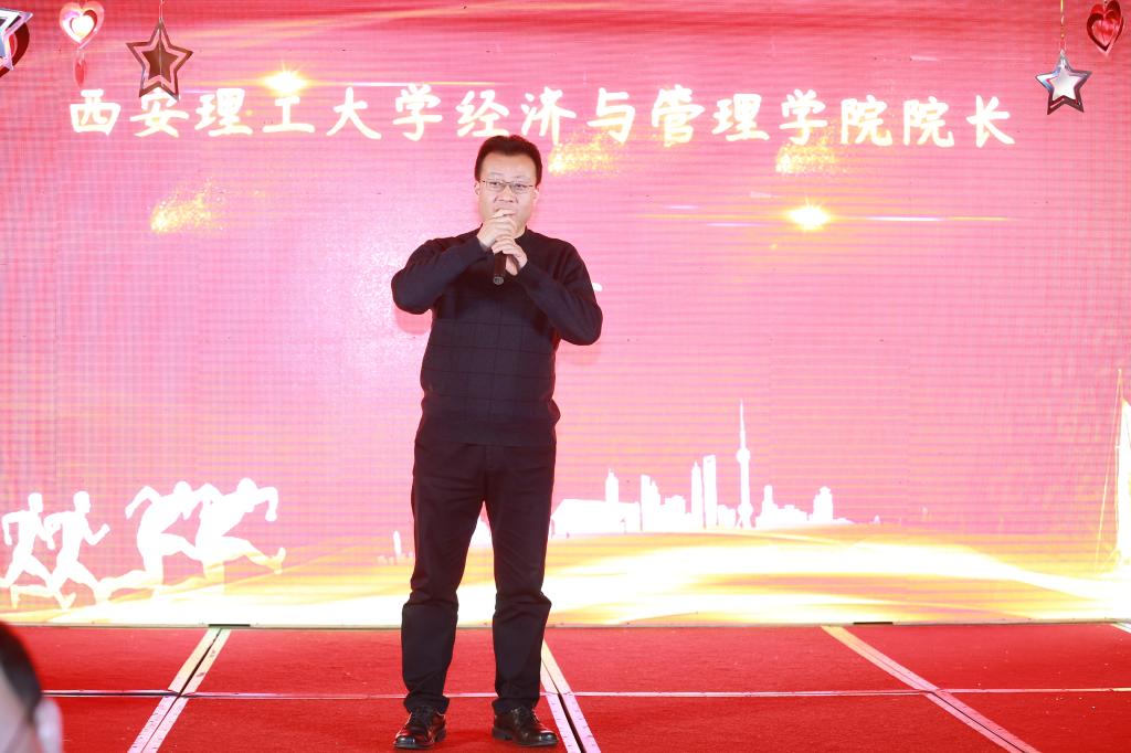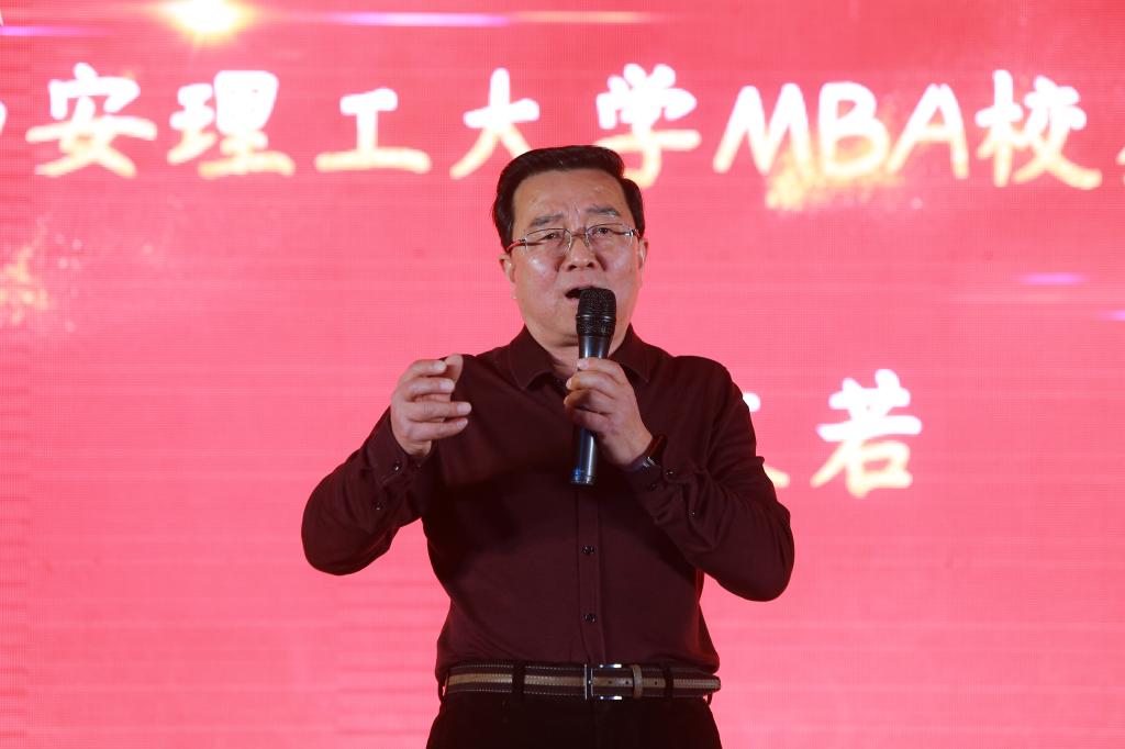 中煤(西安)遥感测绘局原局长张文若发言,他表示连续几年参加理工大MBA迎新晚会,深刻的感受到了理工大同学们的热情,希望同学们能够在理工大的几年学习中,取得成功。