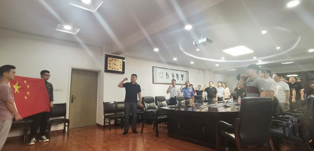 宣誓仪式由陕西省优秀党员赵璟老师领誓,全体教师代表面对国旗,庄严宣誓:我志愿做一名光荣的人民教师,忠于党的教育事业,贯彻党的教育方针,履行教师的神圣职责,做有理想信念、有道德情操、有扎实知识、有仁爱之心的好教师,爱国守法、忠于职守,教书育人、关爱员工,严谨治学、勇于创新,为人师表、甘于奉献,为员工德智体美劳全面发展奉献智慧与力量,为党和人民的教育事业而努力奋斗。