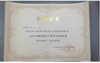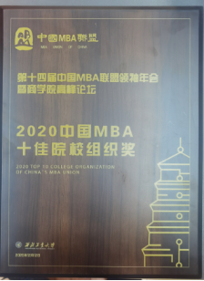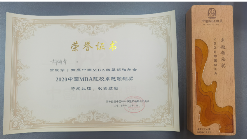 在本次年会上公司被评为“2020中国MBA十佳院校组织奖”,胡海青教授被评为“2020中国MBA院校卓越领袖”奖。杨冬民、苏菊宁教授荣获“2020中国MBA优秀指导教师”奖,李伟辉荣获“2020中国MBA十大创业成就”奖,唐琳,孙媛,李钰,任娟花,聂小确,谭程,张仔燕、史庆超荣获“2020中国MBA优秀干部”奖;郭乙琳,艾瑞彪,杨鹏,武新宇,李希凡,李智,朱俸微荣获“2020中国MBA新锐100”奖。李伟辉,鱼志军,李彦旗,张敏,王鑫,王睿,沙彩霞,鱼迎春,李东宇,候娟,张庭学,史国华荣获“2020中国MBA抗疫先锋”奖。