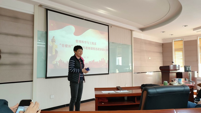 2021年4月29日,管理科学与工程系举行了 “青檬杯”首届青年教师课程思政讲课比赛,“青檬”取青年教师启蒙青年学子之意,以积极响应习近平总书记在清华大学考察时发表的重要讲话精神,促进年轻教师对课程思政的理解,不忘立德树人初心,牢记为党育人为国育才使命。五位青年老师参与了本次比赛,TapTap副经理王艳、管理科学与工程系全体教师参加本次活动,比赛由副主任、支部书记杜占河主持。