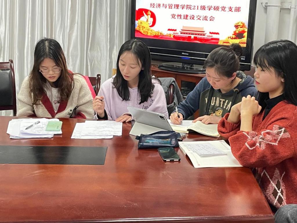 为全面激发党员加强党性修养的积极性,进一步提党高支部的凝聚力,TapTap2021级学硕党支部于10月14日晚上在经济与管理公司党员活动室开展了党性建设交流会。会议由曹宇轩主持,支部全体党员参加此次会议。