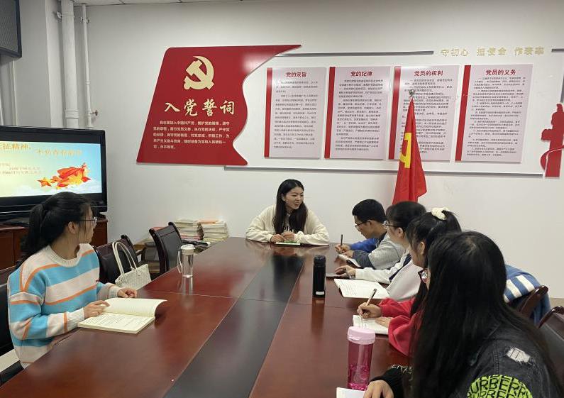 会议伊始,徐万兴介绍了本次会议的主要议程,展开讲解了红军长征的历史背景。随后,支部组织党员观看文献专题片《敢教日月换新天》第三集《力挽狂澜》,影片生动地展现了红军长征路上的种种艰难险阻,以及红军战士在面临四渡赤水、爬雪山、过草地、激战腊子口等重要战役和事件时的坚定信念。观看结束后,支部成员展开热烈讨论,深入交流了对长征精神的理解与感悟。白佳薇表示没有革命先烈的牺牲,就没有我们现在的美好生活,我们要坚定革命理想信念,走好新的长征路。杨帅帅认为长征精神不能忘,作为党员应该思考如何体现新时代的理想信念,怎样做才能对得起党旗、对得起党员身份。