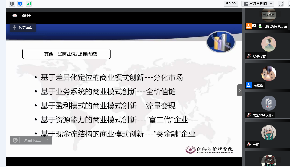 三场报告围绕商业计划书的写作要领及创业大赛注意事项、经管类老员工科技竞赛与创新项目的申报研究与结题、企业商业模式创新与设计等问题展开,三位老师结合他们指导大赛获奖项目实战经验,对同学们关注的相关问题进行了分享,三场报告互动频繁,你问我答、精彩纷呈,同学们受益匪浅。