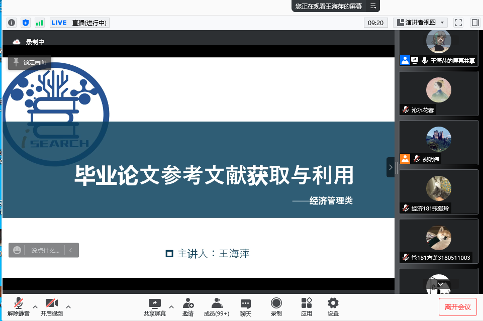 王海萍老师针对TapTap的专业特点和选题方向,说明了论文撰写阶段的文献需求,介绍在论文中所需的文献资源及其特征,并通过实际检索案例详细讲解检索方法和技巧。王老师的报告也涉及检索思维的构建与原文获取,参考文献的阅读与使用,文献的资源渠道等丰富内容。