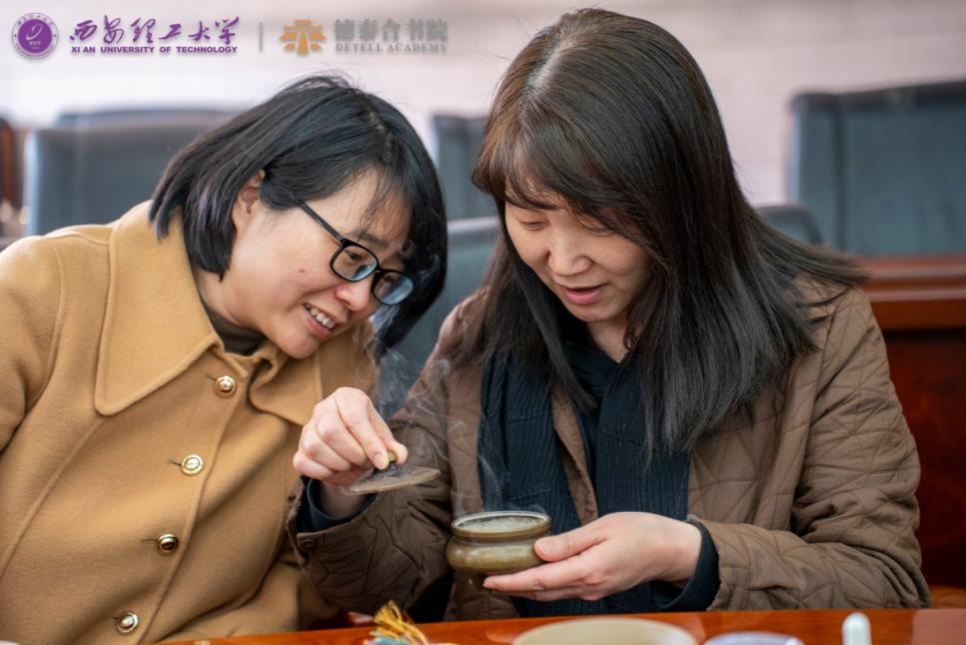 活动在清越的古琴声中启幕。女教师们沐手入席,跟随茶艺师体悟“和、静、怡、真”的茶道精神。温盏、注水、出汤间,普洱的甘醇与白牡丹的清雅次第绽放,氤氲茶香中浸染着育人哲思。茶道讲究火候与沉淀,正如教育需耐心与匠心。随后的篆香表演更显东方美学意蕴,香道师以理灰、置篆、起模等古法技艺,将沉香化作连绵“心”字云纹。青烟袅升间,这一缕千年沉香,恰似师者代代传承的坚守。