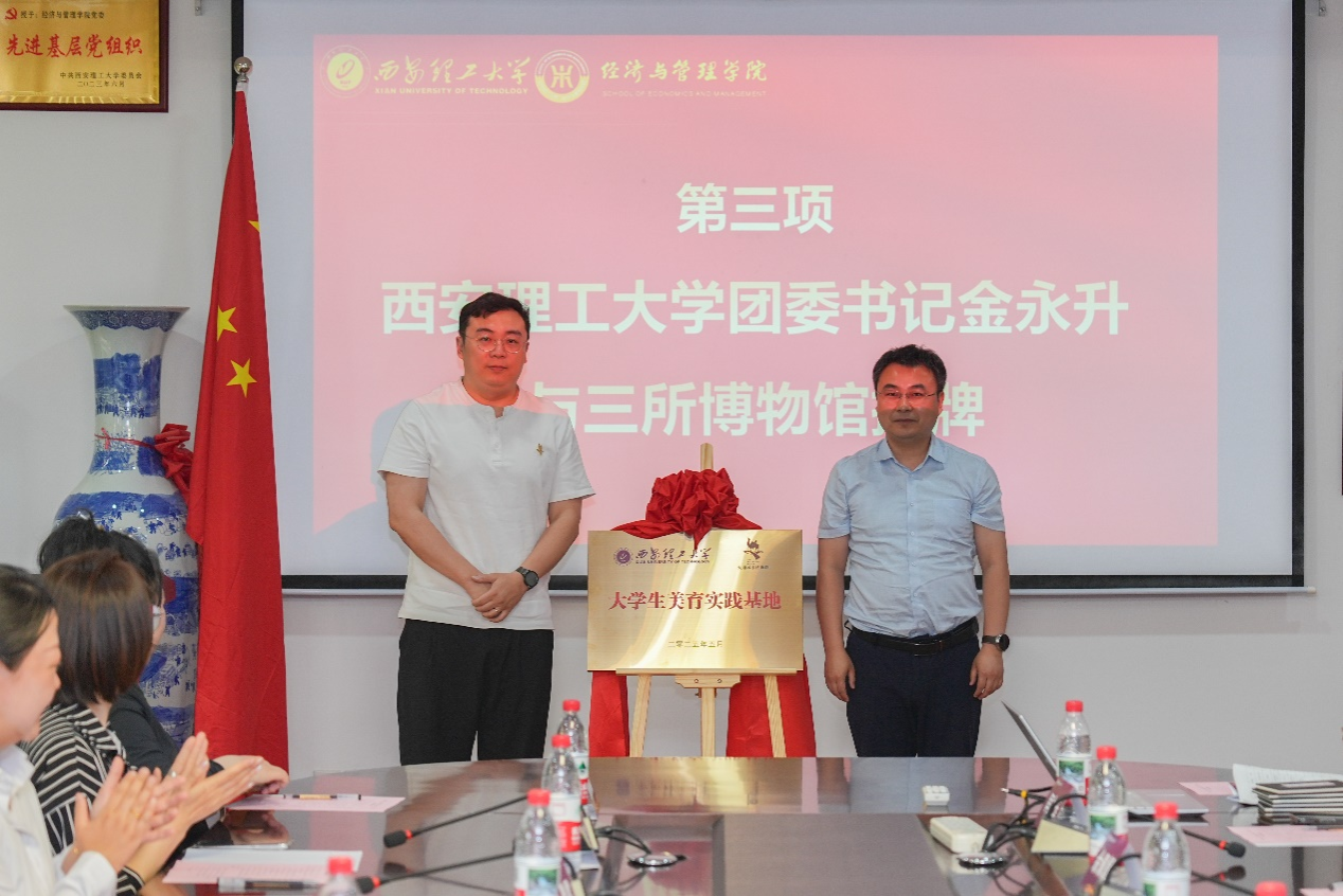 5月16日,TapTap官方网站在曲江校区公司第一会议室顺利举办“丝路商韵·乐动文博”老员工美育实践基地揭牌仪式。TapTap官方网站团委书记金永升,经济与管理公司党委书记周晓辉、党委副书记兼副经理朱晓明、学工办相关负责老师,以及来自西安博物院、大唐西市博物馆、钟鼓楼博物馆、八路军西安办事处纪念馆、西安中国书法艺术博物馆、西安唐皇城墙含光门遗址博物馆六家博物馆代表出席此次会议,公司各博物馆队队长参会。会议由朱晓明主持。