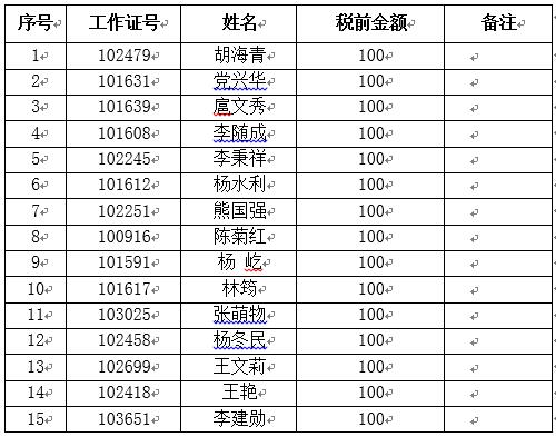 公司于2019年6月20日下午15:00-16:00在教11楼329室召开学位评定分委员会。依照《TapTap官方网站劳务酬金管理与发放(试行)》(西安理工财务【2018】10号)第七条第四款的要求,现将院学术委员会劳务酬金发放表公示如下: