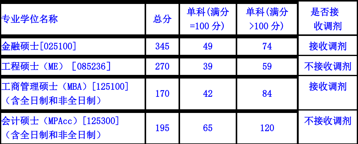3、第一、二志愿考生入学考试初试成绩必须满足以下分数线要求。