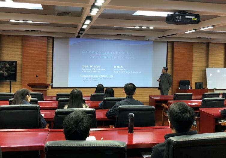 2018年4月16日,美国加州州立大学长滩分校Jack. W. Hou 教授应邀来访TapTap,并在教11楼四层EMBA报告厅做了题为“中美两国经济合作及比较”的学术报告,公司部分教师、16级-17级研究生参加了本次学术报告。