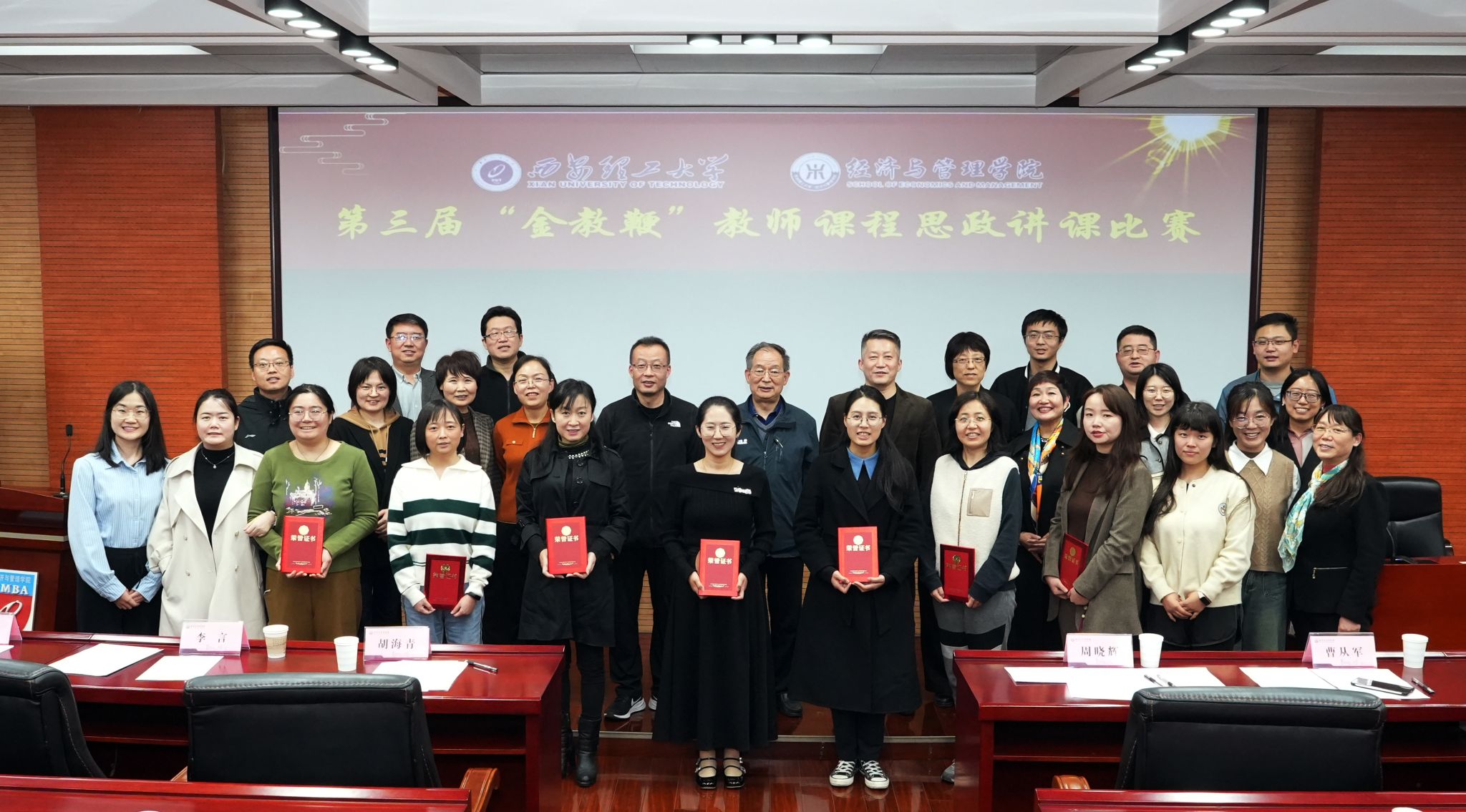 本届比赛共有15位教师报名参赛,经过初评,进入决赛的7位教师按照抽签顺序依次进行15分钟的现场教学展示。评审专家组围绕教学设计、育人因素挖掘、教学方法、教学效果、教师素养等方面进行打分。经过激烈角逐与专家评审,共评出一等奖1名、二等奖2名、三等奖4名。经济与贸易系石涵予老师荣获一等奖,捧走了第三届“金教鞭”奖杯。